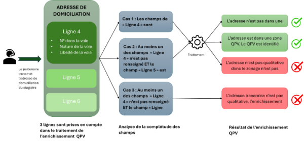 Si la ligne 4 n’est pas correctement renseignée (au moins un champ à Null), l’algorithme du QPV s’appuiera uniquement sur les lignes 5 et 6, ce qui peut entraîner une identification erronée ou l’impossibilité d’identifier la zone QPV.